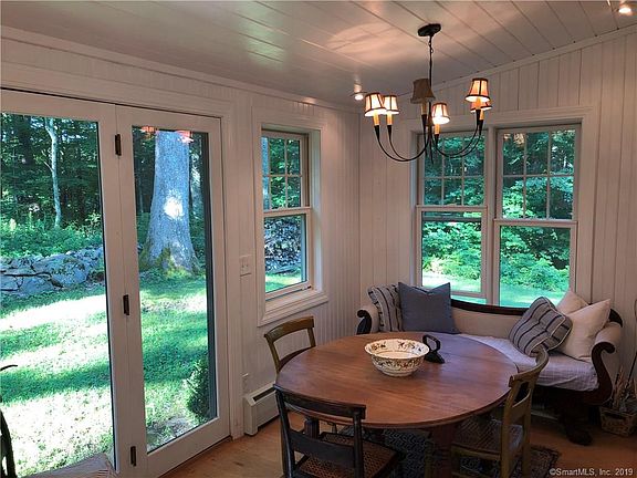 This charming three bedroom 2 full bath Cottage is perched on a private knoll and surrounded by protected nature preserve land. Only a short stroll to Bantam Lake and convenient access to hiking, parks, restaurants and shopping this home is suitable for weekend use or a full time residence. Newly remodeled country kitchen with stone counters, center island and breakfast nook. A first floor master bedroom with en suite full bath. Additional features include built-ins, hardwood flooring, and a beautiful stone fireplace for cozy winter nights. The dining room has wide plank hardwood floor and leads to the upper level with two bedrooms and a second full bath. The rear blue stone patio is accessed from the kitchen and provides a private and peaceful entertainment area surrounded by beautiful woodlands. A detached storage shed for additional storage.