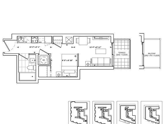 Welcome to 1200 Dundas St W a sleek, 8-storey boutique condo nestled in one of Toronto's most vibrant and sought-after neighborhoods, at Dundas & Ossington. This architecturally modern residence offers the ultimate urban lifestyle with a near-perfect Walk Score of 98 and a Transit Score of 100, placing you steps from Trinity Bellwood's Park and the city's trendiest bars, restaurants, cafes, and shops. Enjoy effortless access to the Ossington subway station and all the cultural charm of Little Portugal. Inside, the studio suite features 399 sf with outdoor terrace, built-in appliances, wide plank laminate flooring, a spacious open-concept layout, and a frameless glass shower for a clean, contemporary finish. Residents also enjoy top-tier building amenities, including a fully equipped fitness center, rooftop terrace, party room, bike storage, and a ground-floor wet bar perfect for entertaining or relaxing. Urban design, unbeatable location, and curated amenities make this condo a standout opportunity for stylish city living.