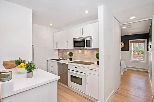 A rare offering of modern luxury in a venerable 1874 Cambridge rowhouse, this sun-filled perch on a tranquil private lane is less than two blocks from the Red Line, Whole Foods, and all the amenities of Central Square. Bask in the bright glow and expansive feeling of its treetop loft bedroom/office, skylights, southern-exposure picture windows, exposed beams and brick, and cathedral ceiling. Recently-installed high-end appointments are found throughout: stainless German kitchen appliances (Miele, Bosch, inc. induction range), Japanese bathroom fittings (Toto), ducted air conditioning, soundproof windows in bedroom, subway tile with radiant heat, Haisa marble backsplash, custom walnut partition, laboratory-grade countertops, wired ethernet, etc. Kitchen and bath renovated 2012, hardwood floors 2018. Assigned private parking, in-unit laundry, and abundant storage make it not only a beautiful but also a livable and convenient home in this prime location between Harvard and MIT.