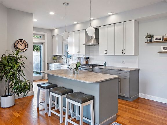 OFFER ACCEPTED - OPEN HOUSES CXLD. Skip the suburbs—everything you need is right here! Welcome to 5 Lamson Street #1, a stunning 3-bd, 2.5 bath condo spanning over 1,500sqft across two-levels located in the heart of Jeffries Point. This modern home with hardwood floors throughout offers the feel of a single-family residence, set against the picturesque backdrop of historic Brophy Park. The entry-level features an open concept living + dining room flanked by a sleek modern kitchen with stainless-steel appliances, granite countertops and a striking center island with seating for 3 as well as a half bathroom for guests. Two equal-sized bedrooms adjoined by Jack and Jill bathroom with bay windows overlooking the park. The entire lower-level (flush with natural light) is an enormous primary owner’s suite with radiant heated floors, a spa-like bathroom with oversized rainfall shower, walk-in closet and laundry room. Massive private patio, perfect for summertime grilling and entertaining.
