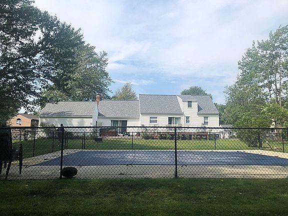 This Cape Cod style home is set on a half acre lot with fenced yard and an in-ground pool. You will love the chalet-like large family room with cathedral ceiling, wood floors, wood burning fireplace and sliding door to the deck. The home currently uses well water but there is public water available at the street. No worries about your heat next winter, the gas hot air furnace was installed in 2013. Central air installed in 2016.