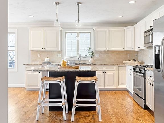 Welcome home to this beautiful Jamaica Plain 3 story townhouse that lives like a single family home. A beautiful kitchen complete with stone counters, marble backsplash, stainless steel appliances, and an island with a wine cooler. Ample dining space, walk in pantry/combo washer dryer room- complete w/side by side machines! Sliding glass doors to the deck make entertaining a breeze. Fully fenced yard is perfect for pets and little ones. Oversized living room with a gas fireplace and a half bathroom complete the first floor of living space. The second floor has three great sized bedrooms, including a primary suite with two closets! There are hardwood floors throughout the home, central air and heating, recessed lighting, and plenty of storage with a walk out basement w/ daylight windows. The unfinished basement has amazing expansion potential with terrific ceiling height and a walk out sliding door to the back yard. There is one off street parking spot in the driveway.