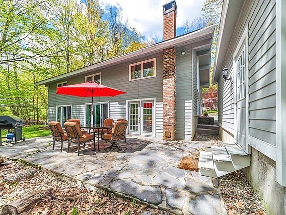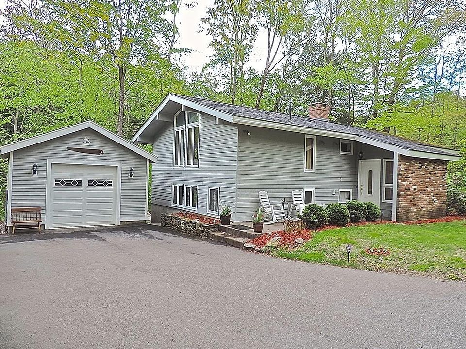 Executive, Split-Level Contemporary, filled with features both luxurious and practical. This attractive home offers a light-filled, modern design with a private wooded backyard and babbling brook. An entry foyer keeps things tidy and organized for family and guests. The lower level's open layout includes a well appointed kitchen, beautiful cabinetry, a formal dining-room, living-room, half bath and laundry. An impressive dual fireplace, administers warmth and lends a cozy feel to this contemporary design while double glass sliders and French doors offer easy access to the backyard patio. The upper level includes 4 bedrooms and 2 full baths. Unwind in the master suite's stunning stone shower and check out the double sinks and walk-in closet. Updates include a custom marble bath, new sliders, a one-car garage, wood shed, retaining wall & more. The home has been stained and painted and move in ready! Located in the village of Shelburne Falls, West County's treasure. Come and check it out.