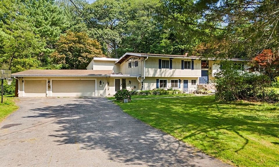 This standout property is situated on a tree-lined cul-de-sac with generous living space inside. Beautiful private back yard with pool. Open kitchen, living room, and dining room have wood floors and high ceilings, and a deck off the back. Charming front to back porch off the living room with woodstove. Primary suite has double walk in closets, baths. Fireplaced family room in the lower level along with more rooms, baths, and closet space plus walkout to back. Large front and side yard too! Long time owners hate to say goodbye to this beloved home and it's acre of land. Also offers central air. Natural gas. 3 car garage. Public water and sewer. Walk-in breezeway with garage entry as well. Join the vibrant community of Framingham - Suburban Metro West, just 20 miles from Boston. Quick to Mass Pike, Route 30, 20 & 27. Commuter Rail, Logan Express bus svc too. Local Callahan State Park, Garden in the Woods, Cochituate, Hopkinton and Ashland State Parks!