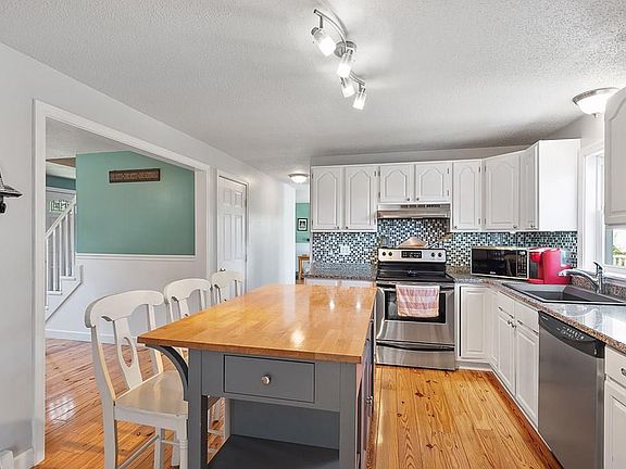 Do you love entertaining outside or even just enjoy your own private outdoor surroundings? If you said yes you must scroll through these photos. This bright, sunny, meticulous home isn't just beautiful on the inside, the outside is something to see. Two storage sheds and a wet bar look over the patio with a fire pit and deck. Upon entering you walk through a large mudroom which is so great for a family. The three car garage has no columns to hinder those who love storage or work space. The house had a total renovation in 2008. The kitchen has been renovated with granite and pine wood floors. Two new bathrooms. All new windows and doors. The pine wood floors throughout the first floor and up the stairs and hallway of the second give this home a bright, fresh feel. The wood stove offers additional heat savings for those New England winters. If you have been looking for that special home that is move in ready, come check this out!