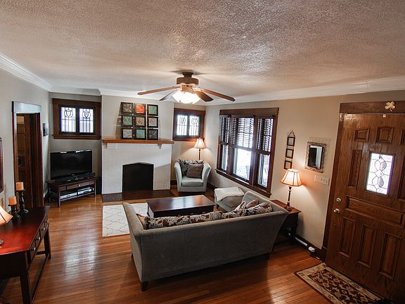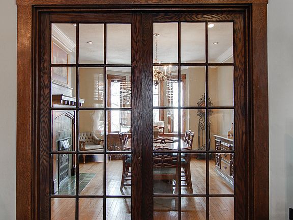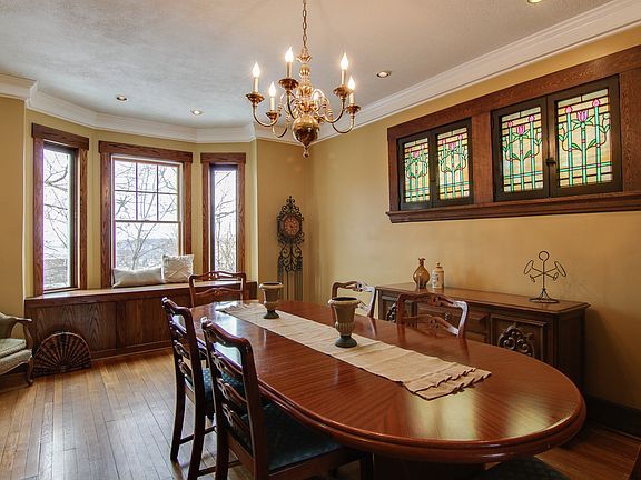 This intriguing 3 story Colonial is filled w/timeless charm & character. The outside greets you w/a lg covered front porch w/3 pillars, unique arched side walls & a stained wooden ceiling. Upon entry, there are HW floors that flow throughout, crown molding, stained glass windows, a deco FP, built-in reading bench & French doors that lead to an elegant DR. Classic DR has vibrant stained glass windows, a bay window w/bench seating, a rustic deco FP, crown molding & a tasteful chandelier. Updated equipped eat-in kitchen includes plenty of cabinetry for storage, tile flooring, a exposed brick wall & access to the rear porch. Upstairs boasts 3 well-appointed BR & 2 full bath each w/tasteful color palettes & sufficient storage space. 3rd level has a spacious finished GR that would be an ideal space for entertaining friends or a hangout place for the family. Unfinished basement w/updated mechanics, private fenced backyard, 3 car driveway & carport complete this delightful home.