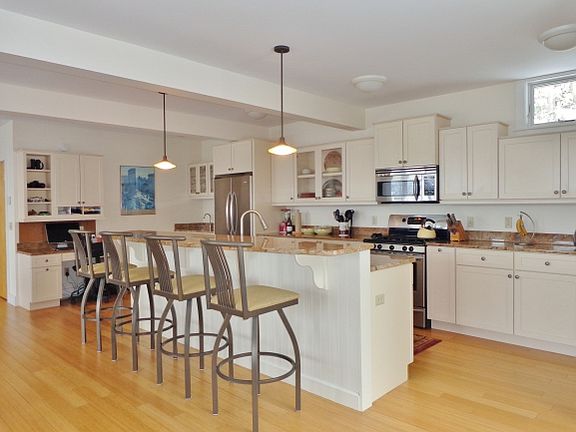On very rare occasions, dreams can come true! This custom contemporary has drama, elegance and history, all just a 5 minute walk to the Ray School. Panoramic sunset views from multiple decks - truly one of Hanover's hillside gems. The gathering rooms are grand in scale with fireplaces that add warmth and focus. The open-plan layout is incredibly convenient with four distinct levels, each just a half flight from the common area where the huge kitchen is the focal point. The impressive master suite not only enjoys the full view but also offers deck access and a private reading room with fireplace. Each bedroom enjoys privacy and plenty of light. The office and family room wing provides perfect separation from the bedroom wing and potential for bedroom expansion, as needed. Be prepared to fall in love!