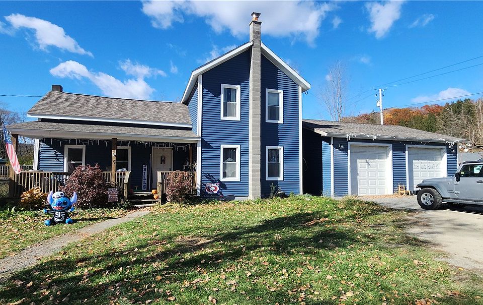 Welcome home to a 3 bedroom 2 full bathroom home on a large corner lot in the heart of VanEtten. Many updates have been made including new roof, all new siding, two car attached 30x30 garage, additional 20 x 16 shed, new flooring in kitchen and more. Two large bedrooms downstairs, full bathroom, with a large living room open to kitchen with a nice size island, plenty of cabinets, space for dining and laundry area. Upstairs you'll find an oversized bedroom, full bathroom and a large attic, great for storage or could be finished into another room. Nice sized fenced back yard with deck and pool. Across the street is more property and creek access. Walk to the park, school, library, ice cream and dandy. Easy commute to Ithaca, Horseheads and Watkins.