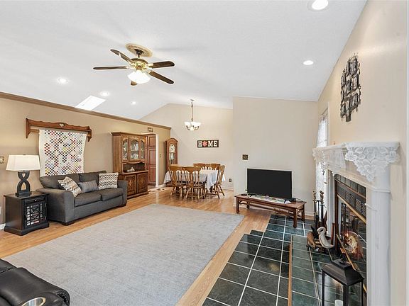 This exquisite ranch-style home offers unparalleled tranquility and luxury. This home backs to a semi private stocked lake with a private dock and is shared with just a few other homes, it promises the ultimate retreat from the bustle of everyday life. Upon entering, you're greeted by the grandeur of vaulted ceilings adorned with skylights, allowing natural light to cascade throughout the spacious interior. The heart of the home boasts a gourmet kitchen with beautiful custom cabinetry. The expansive living area features a cozy fireplace, creating a warm ambiance for gatherings. The primary suite is a sanctuary unto itself, complete with a luxurious en-suite bathroom and an extra spa room for you to relax in the indoor hot tub while looking out the picture window. Outside, meticulously landscaped grounds provide the ideal backdrop for lounging on the deck, chilling on the patio, fishing on the dock or exploring the lake. Please have offers submitted by 4pm Sun 4/21/24 Additional Rooms: Mud Room