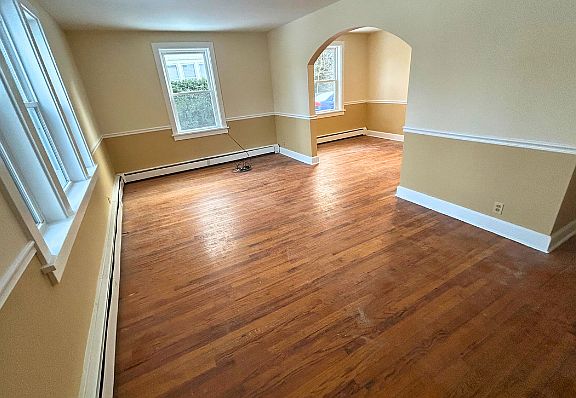 This apartment is on the ground floor of a lovely building in the Village of Dryden. It's a large 2 bedroom, 1 bathroom apartment with hard wood floors all throughout. A large living room with great natural light, with a formal dining room separating the living room from the kitchen. 2 nicely sized bedrooms, a full bath with a tub and newly remodeled kitchen. This unit is available now. $1495/month includes heat and hot water, an attached garage bay. Electric averages $50 through NYSEG. We require references, security deposit and first month's rent. We can allow one cat with an additional deposit. A 12 month lease is required.
