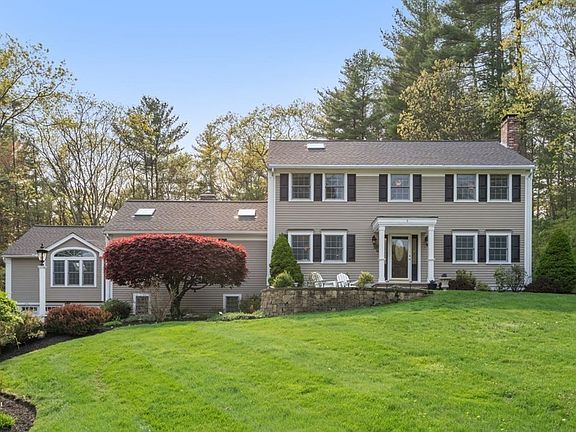 Welcome Home to 5 Lillian Drive, set majestically. on a private lot overlooking the quiet cul-de-sac. This home is not your typical colonial; the home has 4 car garage, cathedral ceiling family room a large media/entertainment room, a three-season room all adjacent to a beautifully appointed cherry kitchen. There is also a formal dining and living room, a wood burning and gas fireplace, a 3/4 bath, laundry room and a home office all on the main level. The second level has 4 generously sized bedrooms, all with hardwood floors, ample closest space and the primary is en-suite with a walk in closest, cathedral ceiling and skylight. This backyard has it all, large deck, a large patio with a fire pit and an above ground pool incorporated into the deck. Hours of tranquility have been spent in this backyard, however if you need to explore Harold Parker State Forest is just down the road and there is a walking trail on the edge of the property to access Duane Drive. WELCOME HOME!!