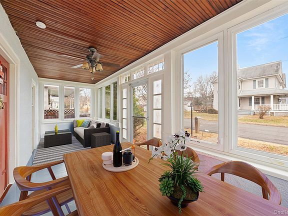 Gorgeous Craftsman-style home nestled in the heart of the Village of Suffern. This charming 3-bedroom, 2-bath residence with a 1-car detached garage sits gracefully on a corner lot. Step into the enclosed porch and feel the serenity—an ideal spot to begin or end your day with a cup of coffee, a good book, or a quiet moment of reflection. Inside, you’re welcomed by gleaming hardwood floors and a spacious living/dining room layout perfect for hosting celebrations or gathering with friends and family. The bright eat-in kitchen features warm cherry cabinetry and ample lighting, creating the perfect environment for preparing your favorite meals. The level, fenced-in backyard offers a lovely slate patio—great for summer cookouts or simply enjoying the warmer months outdoors. All of this is just minutes from town, where you can dine locally or catch a film at the Historic Lafayette Theater. Conveniently close to trains, shops, schools, parks, and right on the NJ border for easy access in both directions.