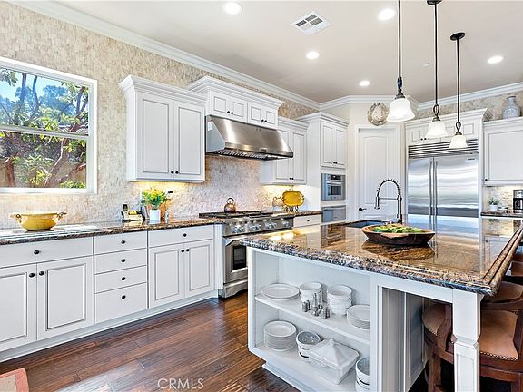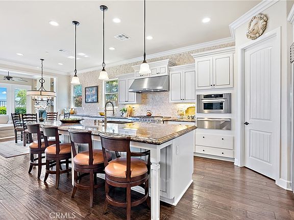 Indulge in luxury living within the esteemed gated Gavilan-Sendero community with this exceptional plan 3 Del Webb single-story residence. Nestled at the end of a tranquil single loaded street on a cul-de-sac, this home offers panoramic VIEWS providing a sense of exclusivity and tranquility. Step into the outdoor oasis, where a meticulously designed California Room awaits, complete with a cozy fireplace and a mounted TV, perfect for al fresco entertainment. The garage has been expanded by 4 feet, featuring sealed floors and custom cabinets, ensuring ample storage and convenience. As you cross the threshold through the magnificent Alder wood front door with beveled glass, you're greeted by a private dining enclave adorned with a custom-designed stone wall, setting the tone for elegant gatherings. The heart of the home, a chef's dream kitchen, showcases exquisite granite and stone countertops, complemented by top-of-the-line Sub Zero refrigerator and stainless steel appliances. Gather around the expansive island, featuring a single-basin sink and breakfast bar seating. Adjacent, the wet bar beckons with its own sink, wine refrigerator, and additional seating. Unwind in the comfort of the family room or the intimate sun room, each boasting its own fireplace ensconced in custom built-ins. The master suite also beckons with a 4-foot extension of living space, offering a sanctuary of serenity and indulgence. Pamper yourself in the primary bath, featuring a spa-worthy whirlpool tub, a seamless glass low-threshold shower, and a walk-in closet adorned with custom built-ins. The second bedroom boasts its own en-suite, ensuring comfort and privacy for guests. Custom window coverings, wood flooring, and plush carpeting in the bedrooms, along with travertine flooring in select areas, grace the interiors with warmth and elegance. Throughout, intricate door casings and crown molding add a touch of refinement. Enjoy a resort-inspired lifestyle at multiple clubhouses like the Hacienda, The Getaway, The Outlook, The BBQ Barn, with extensive amenities including a fitness center, salt-water pool, spa & cabanas, bocce ball courts, yoga studio, fire pits and tv screens. Plus, when you have the grandkids in town, you’ll have access to all the Award Winning RMV community amenities for those of all ages. Experience in 5 Lindura in Rancho Mission Viejo today.