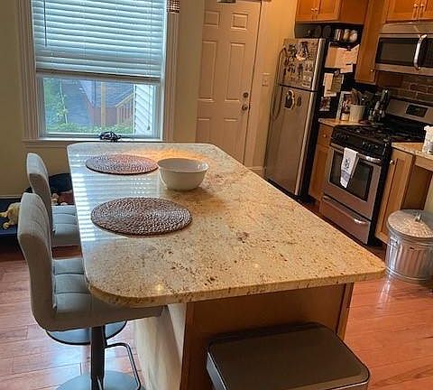 NO FEE.... the one you have been waiting for...available 10/1..property address is 5 Linley. 2 bedroom /2 full bath (one is a master). The top floor of a 2 family residence. Completely updated with stainless, fully appliance kitchen with granite island, central AC, Free laundry exclusive in unit, hardwood floors throughout, open kitchen/livingroom Good sized shared yard, basement storage. Bedrooms can fit queen beds and bureau. Best part is centrally located in great east side location on a quiet street. Very close to Seaport/ buses to South Station and beach... Walking distance to supermarkets and all the great East Broadway restaurants and shops...No parking- resident sticker would be required if have a car. Email for showing . Small dogs negotiable. No cats...sorry..extra security deposited required for dog. Text or email with any questions. Last plus security of $200/person due at signing...1st month rent due on move in date Owner pays for water...all other utilities to be paid by tenants flexible lease terms available..willing to do a lease thru 6/30/23 with an option to renew thru 6/30/24 with no rent increase! Tenants responsible for snow removal