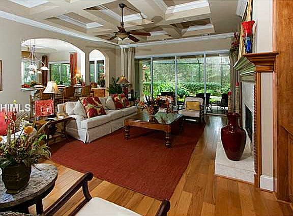DON'T MISS THIS OPPORTUNITY! FURNISHINGS INCLUDED! Original Sunningdale model home with 3 bedrooms, 3 baths in classic European style! Professionally decorated by Betsy Godfrey! Elaborate coffered ceilings, granite countertops, hardwood & Travertine floors, 8' sliding glass doors "disappear" to a peaceful screened lanai, outdoor fireplace, gathering area & incredible pond with 2 waterfalls. Private spa enhances this tropical paradise. The 3rd bedroom/study is adjacent to a full bath. Home backs to Nature Preserve! Located on a quiet court just a short walk to the clubhouse or fitness center. #(0809121)