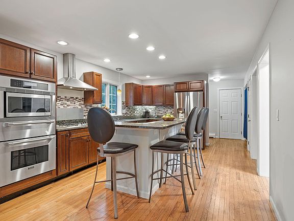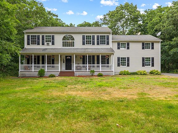 Beautifully spacious home in a very desirable location offering plenty of privacy making it ideal for getting away from it all and living the lifestyle you deserve. Fabulous freshly-painted 4 bedroom home with covered front porch at an incredible value. Upon entering you will encounter a spectacular sun-filled foyer with large windows, vaulted ceiling, oak hardwood floors and recessed lights. The spacious open floor plan is perfect for entertaining with living room with gas fireplace and an adjoining dining room with glass slider out to the back yard, ideal for Summer enjoyment and backyard barbecues. Beautiful cabinet-filled kitchen with granite counters, built-in Thermador microwave and oven, gas cook top stove with range hood, stainless steel appliances, wine fridge, pantry and large center island with breakfast bar. Rounding off the first floor is a perfect side room, light-filled and ideal for a home office. This beautiful home also includes 1st floor laundry and half bath on the main floor. Primary suite, large walk-in closet, private bathroom, walk-in shower, double vanity sink and linen closet. A true Cape Cod home value.