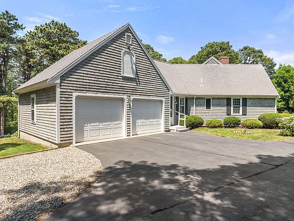 Enchanting cape style ranch tucked away at the end of a cul de sac in a quiet Harwich neighborhood within a short drive to Red River Beach. Custom built in 1983 and lovingly maintained and improved since then by original owners, including a 1990's addition which added a 2 car garage, 2nd primary suite and sun filled family room with skylights and an extra large slider for access to the deck. 3 additional bedrooms, one with an ensuite bathroom, provide plenty of space for family and friends. Great flow with kitchen open to family room and dining room which leads to a large fireplaced living room. Hardwood floors throughout and central air for maxiumum comfort. One floor living possible as laundry has been moved to the first floor. Bonus finished room in the walk out basement. Outside offers mature plantings, outdoor shower, and an expansive deck with a view of woods and a marsh beyond which is lovely in every season. Don't wait, your Cape Cod life begins here!