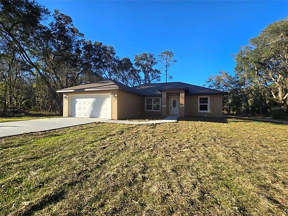 Come see this wonderfully styled, 3 bedroom, 2 bath, 2 car garage on a OVERSIZED .27 AC LOT in the very popular Silver Springs Shores area. This home features a split plan, high ceilings & QUARTZ STONE counters in the KITCHEN, BATHROOMS & WINDOW LEDGES! When you step in side, you will notice the open design with tall ceilings and a split floor plan. The primary bedroom features an oversized closet & en suite bathroom with A FULLY TILED, EZ ENTRY SHOWER & linen closet. The kitchen, has whisper quiet drawers & UPGRADED cabinets with stylish knobs. Gorgeous sink with a beautiful open view. DELUXE SMART APPLIANCE PACKAGE INCLUDES Stainless steel Fridge, Dishwasher, Stove & Microwave comes with the home. A beautifully patterned Quartz counter island comes with room for chairs. Nearby, you have access to the laundry room & garage via a handy pocket door. Across the house, the secondary rooms share the bathroom and will have good space for a full size bedroom set, office, or a game room. The choices are endless! Ample closet space has been supplied as well for all of their storage needs. The .27 acre OVERSIZED LOT gives you plenty of room for all of your toys! NOT IN AN HOA so you are free to build a fence, add a pool, do what you want, how you want! On a well and septic system so NO UTILITY BILLS is also a great plus! If you install back up power in preparation for any possible outage, you will still have use of water and sewer as long as you have electric! Close enough to give you access to Belleview, Summerfield, The Villages, The Interstate and beyond. Less than 10 min to Wal-Mart, Publix, Aldi & Save a Lot, The post office, 3 auto parts stores & car washes as well as many food & medical offices nearby for ease. A short drive in either direction will lead to Ocala's downtown square or to our famous Lake Weir, where you can boat, kayak, jet ski, or enjoy a meal on the lake over looking the sunset. USDA, First Time Homebuyer & Veteran friendly! Almost completed, you can be in QUICKLY