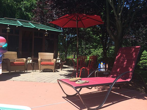 Center Hall colonial with beautifully landscaped back year with Inground pool. Over $75,000 invested in landscsping alone. Cedar Japanese Gazebo with 6 person hot tub, full landscape lighting, Landscape sprinkler system. New pool liner and custom cover (2016), new pool filter and dual motors (2017), renovated master bath (2015), renovated 2nd floor bath (2017), new 1st floor central AC system (2016), 240v/50a electric service in garage with generator transfer switch, New smoke/C02 detectors all floors (2017), finished basement with carpet and new drop ceiling (2915) and recessed lighting, hot water base board heating, 500 gallon LP Tank is owned, well water with salt water treatment tanks with iron removal, new LG washer and dryer (2016), granite counter tops in kitchen and all 3 baths, Oak trim and crown moldings through out. Maticulously maintained
