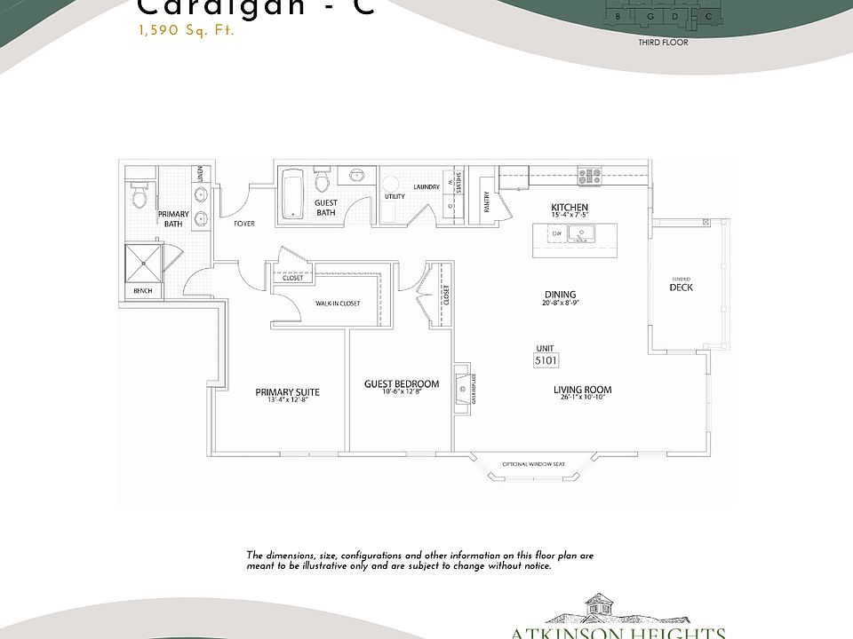 The Cardigan floor plan is an end unit with views of the front entrance and golf course from your patio (in select buildings). It features 1590 sq. feet with 2 bedrooms, 2 baths and an open concept kitchen, living and dining area. The cabinet-packed kitchen has quartz countertops, soft-close cabinets, pantry closet, undercabinet lighting, stainless steel Whirlpool appliances, and a gas stove with smart technology. The primary suite has a beautiful tiled shower and floor, quartz countertops, and a huge walk-in closet. The fireplaced living room has durable engineered wood floors, recessed lighting, crown molding, a bay window and an inviting gas fireplace. All appliances, including washer/dryer, are included. Each unit has an one assigned garage space and one assigned outside parking space.