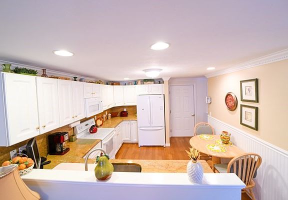 - Features: Breakfast Bar / Nook, Cabinets - Upgraded, Lighting - Overhead, Crown Molding