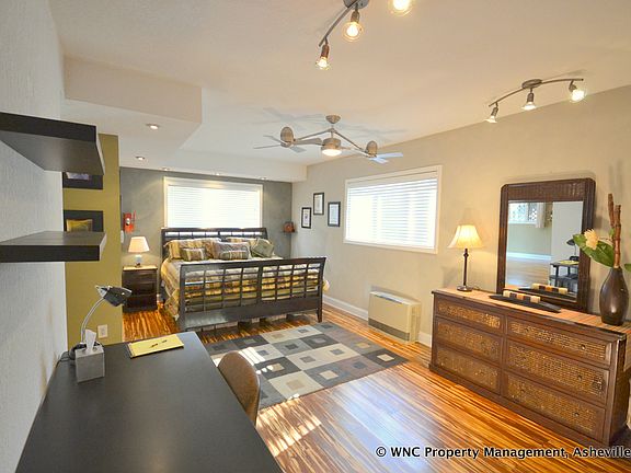 Furnished Modern Apartment Near Beaver Lake, Utilities Included FEATURES: * 1,110 square feet, 1 bedroom, 1 bath apartment in private home with separate entrance * Peaceful setting with private deck facing undeveloped forest; deck gate can be closed to separate from rest of deck area * King size bed in a large open room with large closet and office area * Living room / dining room combo and French doors for lots of natural light * Modern kitchen with full-size appliances * Breakfast area * High ceilings and hard surface floors throughout * Custom tile bathroom with raised bowl sink * Thru-the wall heating unit; portable a/c unit installed seasonally and hooked up to back door vent * 1 off-street parking space available with this unit * Coin laundry nearby on Merrimon Ave * This unit is on the lower level of home, but is above ground; quietly used office space is located above this unit, and landlord's living area is located two floors above the unit * FYI: Verizon cell service works best in the unit (other carries may not work as well) LOCATION: * Located on a quiet, cul-de-sac street with no thru traffic * Only 3 blocks to Beaver Lake in North Asheville * Short drive to North Asheville shops, restaurants, and downtown Asheville * Address: 5 Lornelle Place, Asheville, NC 28804 LEASE TERMS: * Available May 1st * 1 year lease with option to renew * Utilities for one person are included; $75 per month extra for additional person * 1.5 month security * Income must be at least 3 times rent OR have at least 36 times rent in savings * Cosigners (who do not live in the home) are not permitted * Included in rent: high speed internet, electricity, heat, a/c, gas, water, lawn, and landscaping * Strict no pet policy; tenant must be ok with large friendly dog and cats that live outdoors on the property * Smoking is not permitted anywhere on the premises * Landlords are health conscious and prefer to minimize electromagnetic frequencies. High speed internet is available via ethernet but not thru Wifi; Wifi routers and cell phone boosters are not permitted; computers with ethernet ports can use cables, and ethernet-to-lightning port adapter will be provided so that iPhones / iPads can use internet * Unit is fully furnished and landlords prefer not to have furniture displaced. If tenant needs to bring their own mattress, bed etc, they will be responsible for storing any displaced furniture in an approved professional storage facility. * Tenants can receive large packages at house (such as Amazon orders), but regular mail should be delivered to a P.O. box at the nearby post office on Merrimon Ave. * $45 per adult applicant for credit / background check TO SCHEDULE A SHOWING: * Please schedule online at: Offered by WNC Property Management