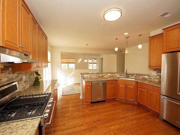 Luxury adult living at it's finest. Enjoy brand new kitchen-granite counters, stainless appliances and hardwood floors that extend throughout the open first floor plan. Vaulted ceiling and recessed lighting in the sunlit family room. Cozy sunroom with slider doors to patio area that overlooks professionally landscaped,oversized property. First floor master suite includes walk in closets and full bath soaking tub, walk in shower with bench and double vanity. There''s a second main floor bedroom with full bath, PLUS private office. Second story loft overlooking family room, full bath and 3rd bedroom. New lighting, new flooring, clean pallette awaits your choice of color and finishes. Lot of storage. Sprinklers and security system, too!