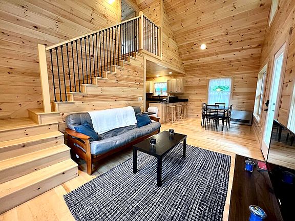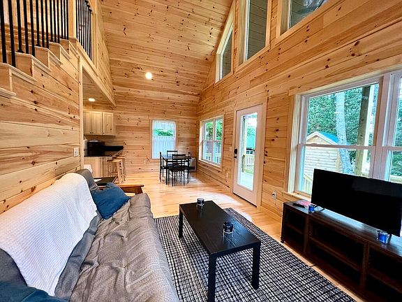 Balsam- The sweetest cabin in a super sweet neighborhood! Thew newest addition in a 7 unit individually owned association with 327' of shared waterfront on Rangeley Lake- dock, swimming area, an opportunity for a mooring and Saddleback just a short drive away! This lovely 2br cabin features a cozy north woods vibe with tongue and groove walls, cathedral ceilings, black iron finishing touches and so much fun right out your front door! 3.11 acres of shared grounds, sauna to ease the days adventures, 960 sq ft garage shared with the 7 units. These cabins have been operated as housekeeping units and now available for purchase so great opportunity to pick up some additional revenue to assist with costs. Call, text, email today to schedule your private showing.