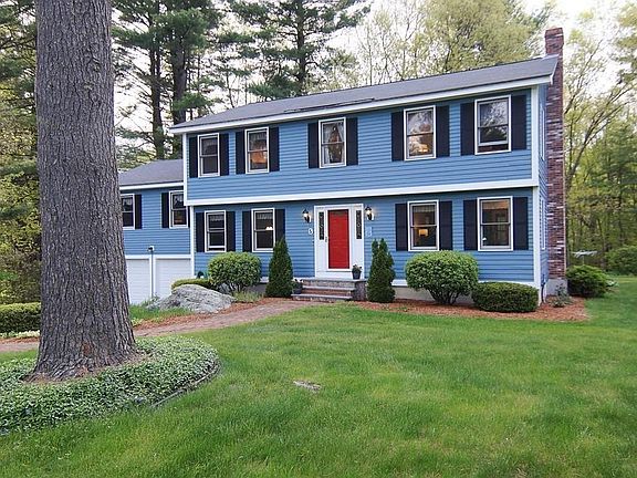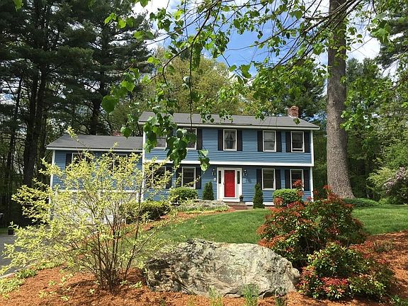 At the back of a charming small cul-de-sac sits this pristine nine room colonial home. It is sited so perfectly amidst the natural contours of the lot with evergreen pine, flowering shrubbery, outcrops of natural granite rock all integrated together and organized by a beautiful stone wall. What curb appeal! First floor bids welcome with newly redone hardwood floors and freshly painted rooms. There is an office off the living room, a gracious dining room and updated kitchen with granite counters. Just off the kitchen through glass doors is a large wood deck and an expansive level private yard. The family room is brilliant with vaulted ceiling, skylights, large windows and wood burning fireplace. Up on the second level there are 4 spacious bedrooms and both master bath and hall bath have been updated. The exterior has just been painted in 2015 and new shutters just added. Location is near W. Concord - restaurants and shops nearby. Just move in and enjoy!