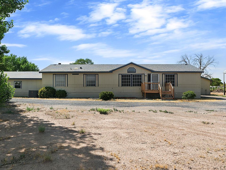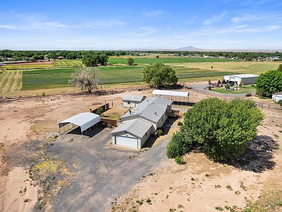 Welcome to this spacious home, nestled on 2 acres in Los Chavez. Featuring 3 bedrooms 2 baths, 2 living areas, a formal dining room with laminate flooring, a fireplace, and skylights that flood the home with tons of natural light. The primary bedroom is complete with a garden tub, separate shower, and double sinks. Backyard has a large deck perfect for hosting outdoor gatherings. Other features include 2 detached garages/workshop, carport, and an RV carport with ample space for all your storage needs all on a fully fenced lot. Don't miss the opportunity to make it yours!