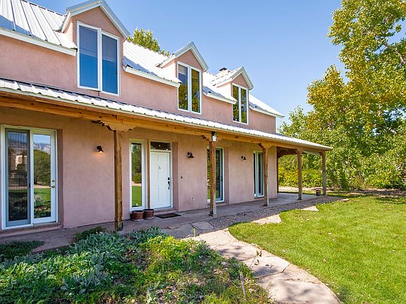 Gorgeous Northern New Mexico-style Taggert adobe with spectacular mountain views set in a lush east-side Corrales neighborhood bursting with flowers, mature cottonwood trees & fruit orchards. Open floor plan has vaulted tongue-and-groove ceilings, beautiful brick floors & kitchen featuring Talavera tiles, top-of-the-line stainless steel appliances & ample storage. One bedroom possible on ground floor. Separate casita is full of character & perfect for office or additional family member. Wonderful home for entertaining with French doors opening to wrap-around porch facing verdant lawns & majestic trees. Ideal horse property with 4 new horse paddocks, located near Corrales bosque. Corrales country living at its very finest & most elegant!