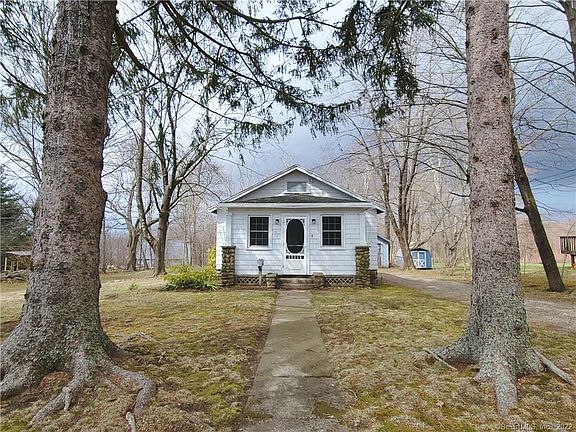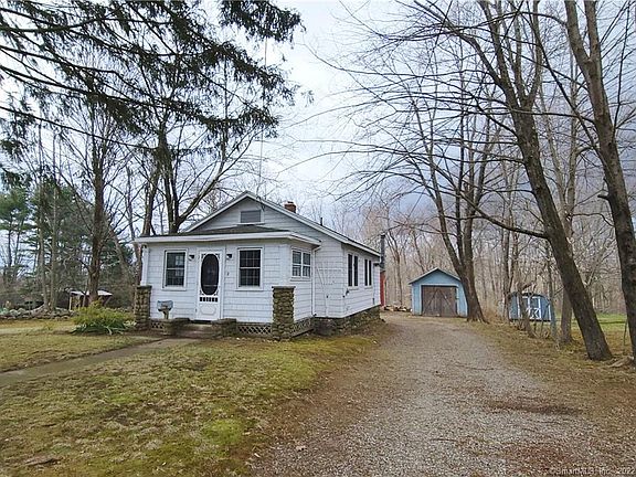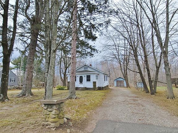 An adorable cottage on a quiet residential street close to downtown and 1.5 miles from Lake Pocotopaug. A perfect property for a professional mechanic, car or motorcycle collector, carpenter or woodworker needing a workshop. The 720 sqft detached garage has a functional woodstove and propane heater that could be hooked up to heat each level. A staircase leads you to a full second story that has a ton of potential - a home office, artist studio, yoga/exercise gym, or recreation space for a pool table and bar to name just a few possibilities! Lots of windows and head room to fit a variety of needs. The house is quaint with an updated kitchen, large living room with woodstove, full bath and one bedroom. The porch is a bonus space and could be used as an office or another sitting area. Access the full basement via the hatchway. It is clean with a concrete floor, laundry hook ups and all the mechanicals. The older shed offers additional storage space for yard equipment or tools. The level 0.59 acre lot is lightly wooded for privacy.