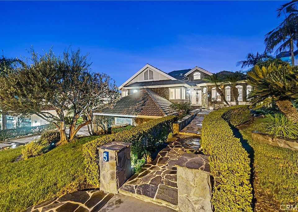 Luxury living begins in this custom home located in the exclusive guard-gated community of Sea Pointe Estates, featuring breathtaking views of the Pacific Ocean, captivating sunsets and the California Coastline. Extensive use of natural stone adds warmth and sophistication to this truly amazing coastal home. With an inviting open floor plan, loaded with natural light, this property is perfect for entertaining. Enjoy the ocean and sunset views while cooking dinner or an evening beverage on the deck. Beautiful archways enhance the architectural features and multiple sets of French doors open to several outdoor entertaining areas brining the outdoors in. The primary suite is completely separate, creating a private retreat with a a covered patio area, perfect for reading your favorite book or just relaxing and enjoying the view. Designed to accommodate a variety of needs, this home included two offices, (one office upstairs with amazing ocean views and built-in library), oversized secondary bedrooms, one en-suite and a 5 car (side-by-side) garage. If you are automobile enthusiast, you will appreciate this garage! Enjoy all that Sea Pointe has to offer, including a resort-style pool and spa, tennis courts and clubhouse. Sea Pointe is a wonderful private hilltop community located close to world-class beaches, dining, charming boutiques, wines bars and the iconic Dana Point Harbor.