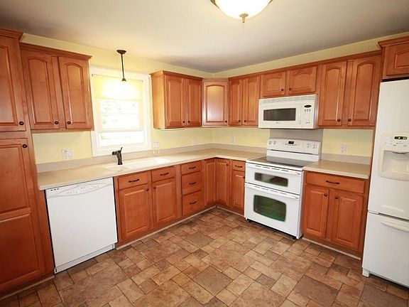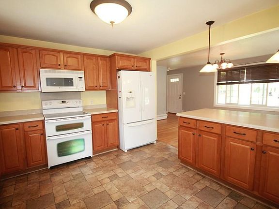 WELCOME HOME!! You will find nothing but peace and quiet in this tastefully renovated Cape located in a quaint neighborhood! The open kitchen/dining room layout provides the opportune setting for hosting and entertaining. Updated counter tops, tile floor & breakfast bar open to a bright and spacious area to enjoy your meals. Refinished hardwood floors are found throughout the entire first floor. The main floor bath features a double sink vanity & a full tub/shower. The living room is cable-ready & recessed lighting just awaits your wall-mounted TV. Take the stairs to the second floor where all carpeting has recently undergone professional cleaning. The upstairs bedrooms each feature a skylight for extra light and fresh air to make its way into your sleeping quarters. Don't forget the brand new washer and dryer staying for the buyers enjoyment! The mudroom leads out to the spacious patio which overlooks the huge, flat, fenced-in backyard - picture perfect! DON'T MISS OUT!!
