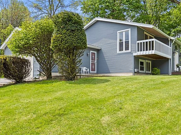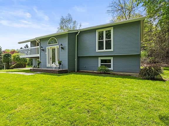 A uniquely designed raised ranch located in a quiet and desirable neighborhood. The beautiful and spacious two level foyer invites you to immerse yourself in the open design of the kitchen, dining room and lovely living room with hardwood floors which opens to a walk out balcony and offers a seasonal view of the bay. Upper level includes two bedrooms, one an ample sized owner's suite with a walk in closet and a shared full bathroom with large shower. Lower level includes two ample sized bedrooms, large closets, full bathroom, family room and furnace/laundry room. Both upper level and lower level have access to the garage and exterior. Lower level furnace without A/C 2009. Upper level furnace with A/C 2004. New A/C condenser 2021. HWH 2019. Tear off roof completed in 2023. New vinyl windows and vinyl siding completed in 2023. New gutters, downspouts and exterior aluminum trim completed 2024. New garage door and opener, new storm doors. Open house Saturday 5/18 at 11:00 am - 1:00 pm. Delayed Negotiations. The seller will review YOUR offer on Monday May 20th at 6:00 pm.