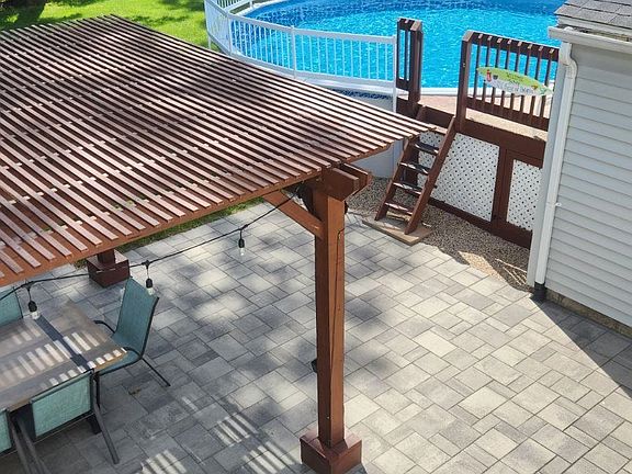 This move in ready colonial is a true gem in a great Exeter neighborhood. Walk in to the bright and sunny breeze way and step up into the kitchen. From there move into the formal dining room and then make your way to the spacious family room with a beautiful wood burning stove insert in the fireplace with an updated surround and mantle. Upstairs are 3 good size bedrooms and a small office. Gleaming hardwood floors and fresh paint through out. There's also a partially finished basement with lots of possibilities. Two car attached garage. The rear yard features a patio with a pergola and an above ground pool summer pleasure. Oversized shed with attached wood storage.