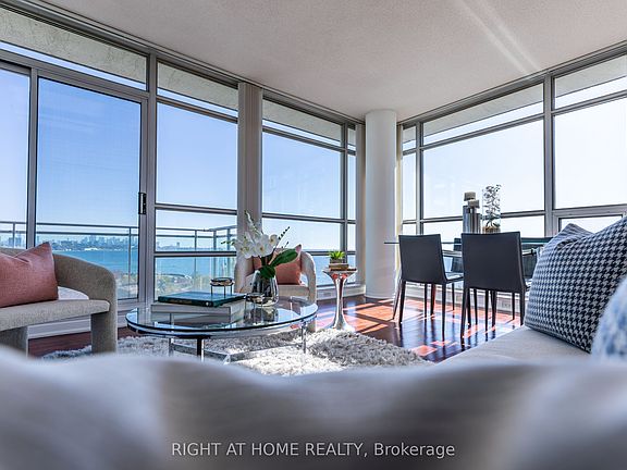 perfect home for the executive or retiree looking for peace, tranquillity and unbelievable water views! 2 bedrooms & 2 full washrooms, 3 walk-outs to the balcony overlooking the lake and city of Toronto, all bedrooms have big windows, eat-n kitchen with stainless steel appliances, underground parking and locker included, one of the nicest views of Toronto's waterfront, also it is the 6th floor there is no unit above only the patio of another unit. Unobstructed views from East to South to West!