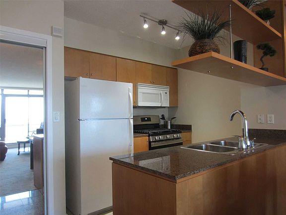 Beautifully Laid Out One Bedroom Plus Large Separate Den. Den Can Be Used As A Second Bedroom. Sunlight In All Rooms Including Kitchen. Open Concept Living & Dining W/Walk-Out To Balcony Overlooking Lake, Kitchen W/Open Bar & Shelving. 30000 Sqft. Rec. And Fitness Ctr.Includes Olympic Size Pool, Running Track, Basketball, Tennis, Bowling, Gym, Spa, And Much More. Steps To Cn Tower, Rogers Ctr, Entertainment District, And Waterfront.