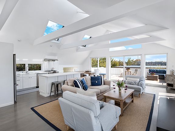Rental Registration #: 25-185 This wonderfully decorated contemporary home, located just two blocks from prime Atlantic Ocean beaches in the Amagansett Dunes, is a super chic 4 bedroom, 2.5 bathroom home. The 2-story home has an upside-down configuration affording wonderful views of the unobstructed natural dunes from the main entertaining areas. The upper level open-style great room is complimented with stylish cathedral beamed ceilings and features a brand-new kitchen, large island, separate dining area, comfortable living room with fireplace and a half bath. An expansive outdoor deck extends the living space beautifully with a large sectional sofa, sunken hot tub, built-in grilling station and outdoor dining table. The upper floor Master bedroom suite, also with high ceilings, contains a large marble bathroom, walk in closet, gas fireplace and private balcony. The main floor opens with a welcoming entry foyer, 3 spacious bedrooms each with sliding doors allowing direct access to the outdoor gardens, lounging areas and convenient outdoor shower. Completing the main floor is a great bonus room featuring a well-equipped butler's pantry with storage, wine fridge & laundry facilities as well as a separate full bath. Extensive landscaping with mature natural specimen trees wrap you in this private summer oasis. EXCLUSIVE RENTAL.