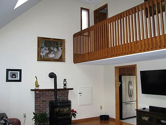 Call Rich Brandi for an appointment. Exceptional custom home located in a secluded neighborhood. This unique home has the feel of a mountain chalet but is located in a convenient North Randolph residential neighborhood. The spacious airy living room has a cathedral ceiling, skylights and a pellet stove. There is a first floor master bedroom with double closets. The main bathroom has a very convenient attached first floor laundry. The beautifully updated kitchen has plenty of elegant cabinets, stone counters, breakfast bar, updated lighting and is open to a stunning picturesque solarium with magnificent views of a wooded area and your private back yard. The lower level has an entertainment room with additional full bath, a bonus room that could be used as an office and an area for potential summer kitchen. There is also an attached storage/workshop area. This incredible home is conveniently located with easy access to main roads and just a short distance to shops, public transportation and local amenities. Call Rich Brandi 617-699-7742 for an appointment