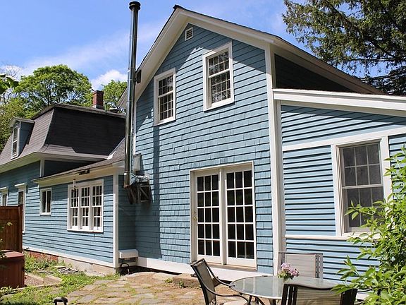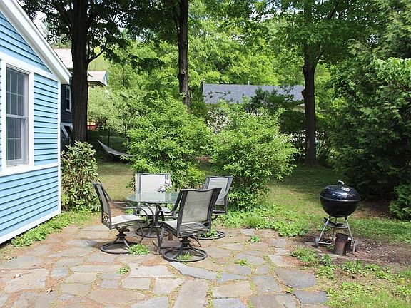 The Village of Shelburne Falls, one of the most sought out places to live in Franklin County. This charming Mansard house, located on one of the few dead end streets in town, features large, well-lit rooms with beautiful hardwood floors, a remodeled kitchen and numerous upgrades. The separate living spaces allow folks to spread out. Blown in insulation, a newer energy-saving electric hybrid hot water heater and two wood stoves to supplement the steam heat make this home more efficient to stay warm. Large French doors lead to the field stone patio and hot tub with privacy fence. Pleasant yard has enough space for backyard fun and chickens. There's also a one car garage and shed. Come experience this wonderful and unique location.