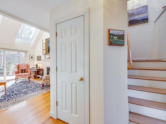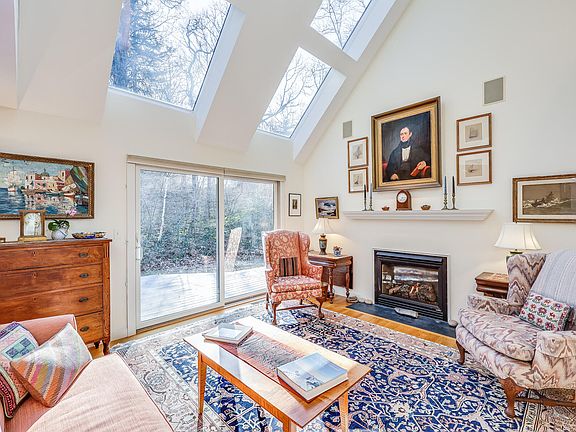 Contemporary home in Gansett Woods w/deeded beach rights to Gansett Woods Beach. This well-designed home has 16' 4'' ceiling & 5 skylights in the open concept living/dining area. The freshly painted living space boasts oak hardwood floors, gas fireplace, ceiling fans, natural light & serene deck along the length of this luxurious room. The custom kitchen was renovated 2018 w/corian countertops & elegant white cabinetry. The primary bedroom suite is on the first level. The laundry room is on the first level & plumbed to be a bathroom. The 2 car garage was built in 2016 w/kayak hoist. A spacious, open, room w/heart pine floor is on the 2nd level plus 2 bedrooms, 1 bathroom & loft area. Enjoy near by Woods Hole Village w/ fabulous restaurants, artisan shopping, boating, fishing, tennis, Martha's Vineyard ferry, Shining Sea bike path; a 10.7 mile trail through Falmouth w/ stunning views of beaches, salt marshes & harbors for walkers, cyclers & runners to enjoy, Stony Beach, the Knob, Nobska Beach & Lighthouse, Marine Biological Laboratories, WH Oceanographic Institute, Childrens' School of Science & WH Golf Club. This home is complete w/ heat pump generated heating and cooling. Springtime 2023 the gardens of 5 Mast Road will not disappoint. Newly planted Dogwood Trees are in the back yard. Spring will bring many daffodils, peonies, foxgloves, blueberry bushes, among other carefully planned shrubs and perennials.