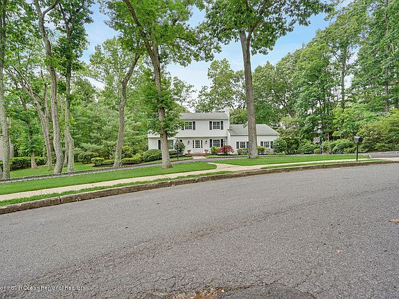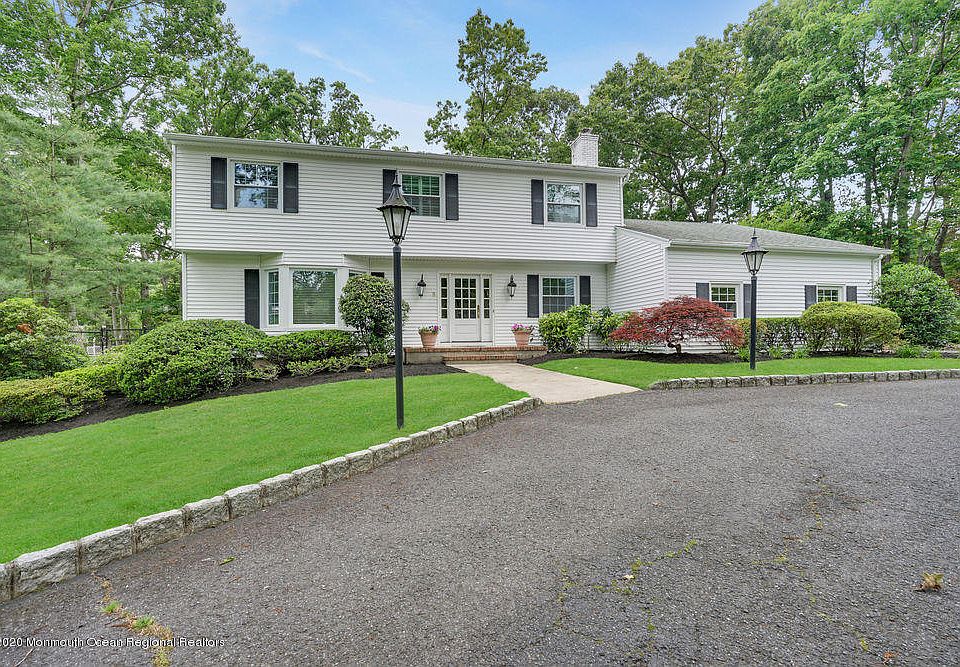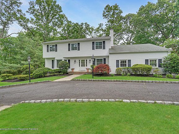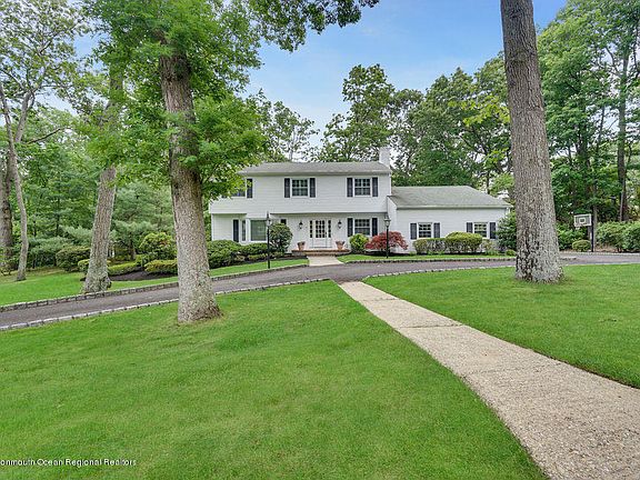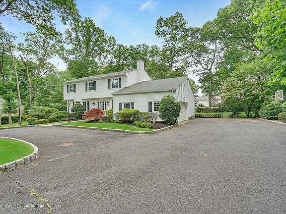 Considering a move to the Jersey Shore? 5 Matilda is the ONE you've been waiting for. This stunning 4 bed 2.5 bath center hall colonial is situated on a gorgeous wooded mature lot on a private circle. Very special location. With a circular driveway, 2 car side entry garage and private backyard with inground gunite pool, you will want to make 5 Matilda your next home. Beautifully appointed inside with features such as hardwood floors, ceramic tile, large eat in kitchen with custom cabinetry, granite counters, as well as gas fireplace, trim and boxrail molding millwork throughout as well as an amazing warm and comfortable floor plan. Large basement for more space. 3 miles to Jersey's finest beaches, minutes onto Rt18 & the GSP and excellent schools makes this home your next move. Let's GO!