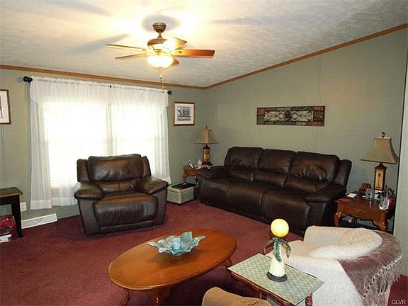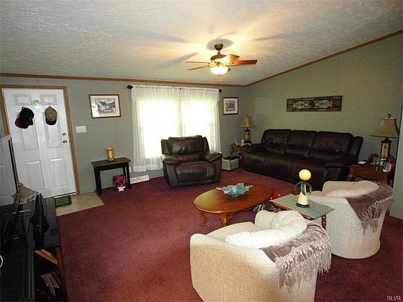 BACK ON THE MARKET DUE TO BUYER DEFAULT! THE VIEWS HAVE IT! Enjoy the seasons in this spacious 2002 Skyline 3BR, 2BA home in VGC with breathtaking panoramic views of the neighboring Blue Mountains. NOTHING TO DO BUT PACK YOUR BELONGINGS AND MOVE! Open concept, vaulted ceilings, freshly painted rooms, upgraded kitchen with oak cabinets and appliances. Walk in closet in New flooring in both bathrooms! Master bedroom features walk in closet, garden tub and stand up shower in master bath. Relaxing covered front "Trex deck" porch, great for relaxing and enjoying the views of the mountains! Central Air, 1st floor laundry, covered side deck, car port and large shed are just a few of the many extras this home offers! Located in Blue Mtn. View Community Park, $355 mo. lot rent incl., W/S/G. HOME RECENTLY REASSESSED! CHECK OUT THE LOWER TAXES! CALL TODAY TO SEE THIS HOME! ENJOY PHOTO TOUR!