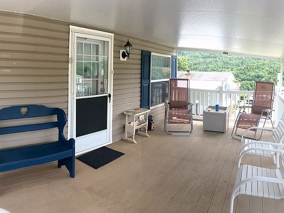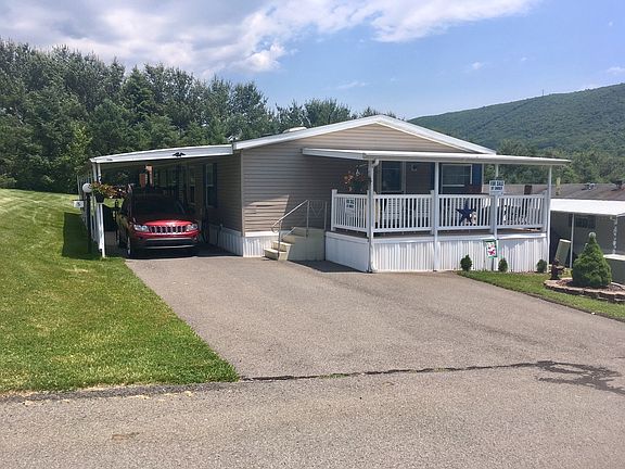 BACK ON THE MARKET THRU BUYER DEFAULT! THE VIEWS HAVE IT! Enjoy the seasons in this spacious 2002 Skyline 3BR, 2BA home in VGC with breathtaking panoramic views of the neighboring Blue Mountains. NOTHING TO DO BUT MOVE! Open concept, vaulted ceilings, freshly painted rooms, upgraded kitchen with oak cabinets and appliances. Walk in closet in New flooring in both bathrooms! Master bedroom features walk in closet, garden tub and stand up shower in master bath. Relaxing covered front ''Trex deck'' porch, great for relaxing and enjoying the views of the mountains! Central Air, 1st floor laundry, covered side deck, car port and large shed are just a few of the many extras this home offers! Located in Blue Mtn. View Community Park, $355 mo. lot rent incl., W/S/G. LOW TAXES!! CALL TODAY