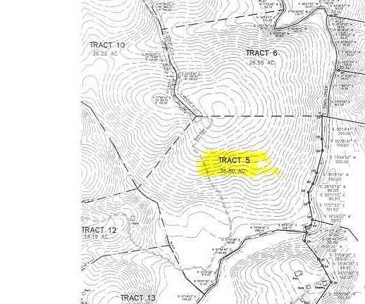 Great views of Pilot Mountain, Hanging Rock and Sauratown Mountain from knoll at north end; cultivated fields at top and bottom; good farm road thru tract; level bottom area along creek. 2,239 fronting on Tom's Creek. Access will be by road to be built. Tract size, frontages and dimensions subject to final survey.