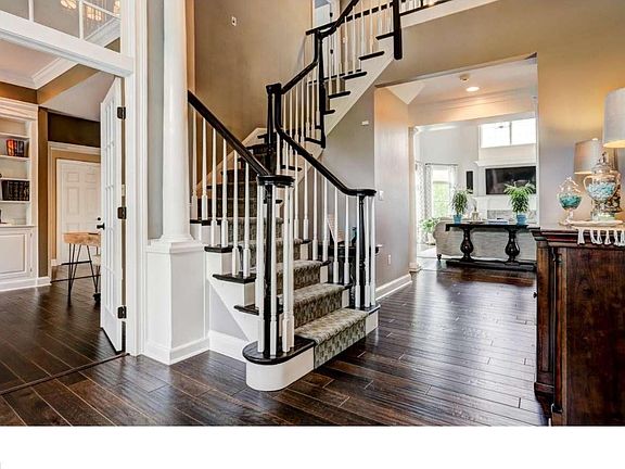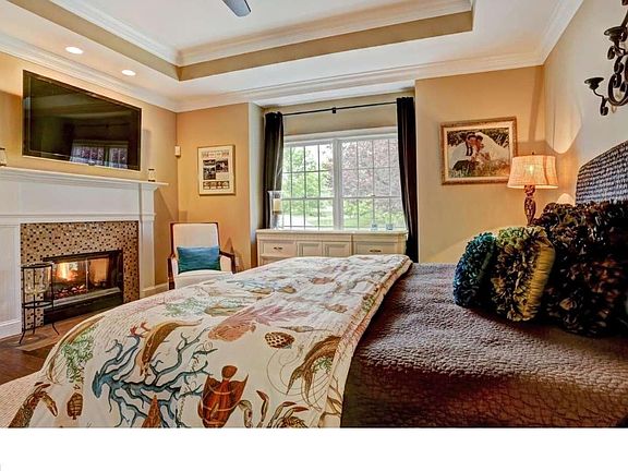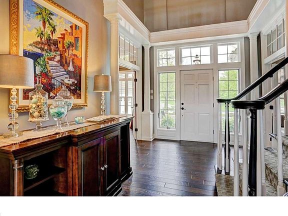 The undulating greens and contoured fairways of the Cherry Valley golf course provide a serene and profoundly beautiful backdrop to the distinctive residence at 5 Mayacoo Lakes Court. Upon first approach, the Belgian block apron and lined driveway, as well as the meticulous landscaping and carriage house style doors on the three-car garage, set the tone for the thorough attention to detail embodied throughout the entire home. The front door with colonial grid transom and operable sidelights provides a traditional and stately entrance to the home. Flanked by columns, the entrance to the first floor master suite lies to one side of the entryway. French doors lead first to a private sitting room, with built-in bookcases to either side of a two-sided fireplace that is shared with the master bedroom. The master bedroom is highlighted by a beautiful tray ceiling. The master bath is the epitome of luxury, from the heated tile floor to the freestanding tub and the separate stall shower. A double walk-in closet features an abundance of storage...pour deux. Across the entryway, the dining room has raised panel molding and a butlers door to the kitchen, where a suite of stainless steel Jenn-Air appliances await, in addition to granite counters, a center island and Travertine tile floors. Step outside the kitchen onto the breakfast porch, a quiet retreat with magnificent views. The two-story great room is the nucleus of the home. Anchored by a marble surround fireplace, the room is surrounded by a combination of windows and French doors with transoms, allowing an abundance of natural light to fill the room. The main staircase leads to two spacious en suite bedrooms, separated by a hallway overlooking the great room. A second staircase, accessed through a corridor behind the kitchen, leads to a private guest suite above the garage. A sitting room, bedroom and full bath create a comfortable space for a multi-generational home, an au-pair or your favorite houseguest. The basement is finished with the same attention to detail as the main living area, adding a large recreation room, wet bar and full bath in addition to an unfinished storage space and separate workshop area. This exquisite home offers the luxury amenities discriminating buyers have come to expect, including a convenient location just miles from downtown Princeton and within the highly rated Montgomery School District.