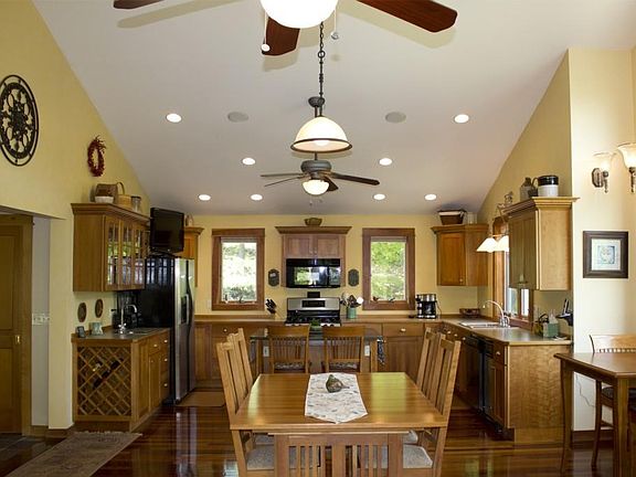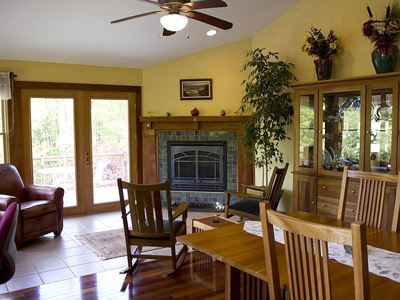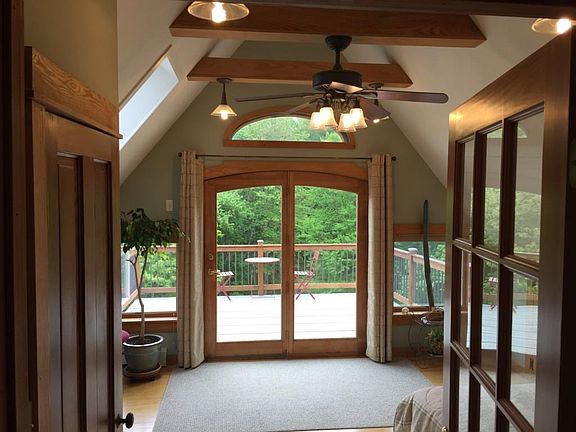 Imagine enjoying your morning coffee perched above your private pond watching birds and wildlife that frequent this hillside oasis. The first floor kitchen/great room includes a fireplace and window seat over-looking the water. Arts and Crafts inspired details are throughout. The lower level has a welcoming fireplace with an eat-in kitchen that walks out to a beautifully landscaped blue stone patio with outdoor shower. Rejuvenate in the sauna then plunge into the deep, spring fed pond.