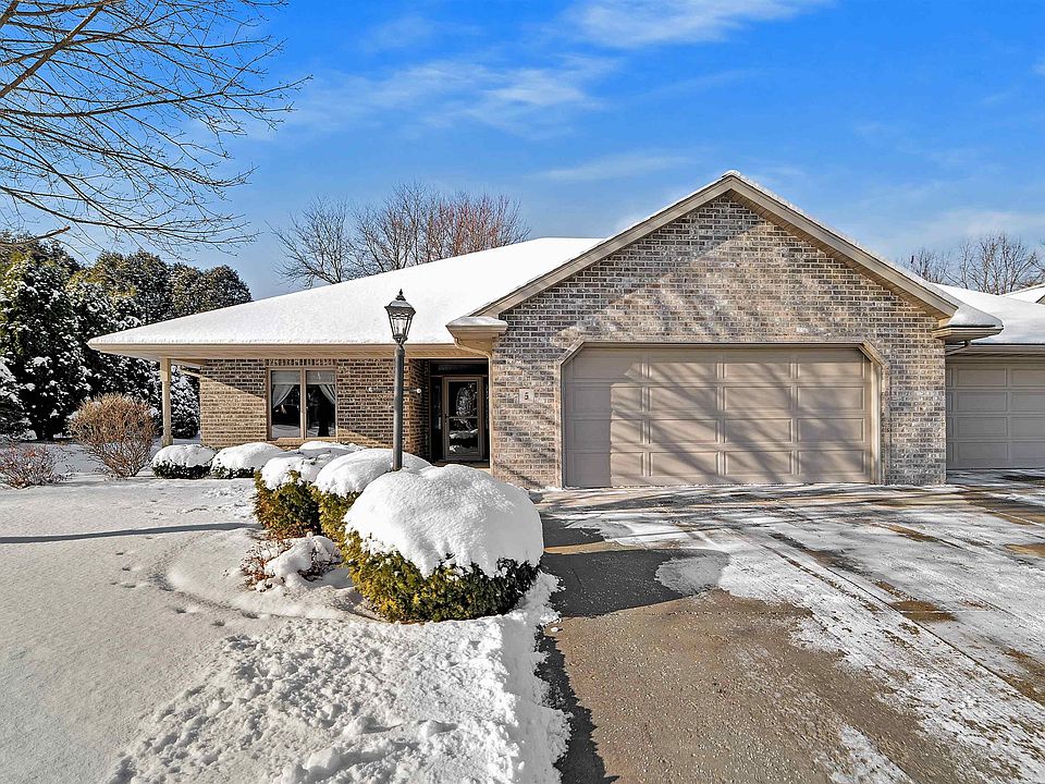 Impressive like new perfectly maintained 2bdrm, 2.5 bath condo with all the upgrades! Nestled in a parklike setting this zero entry split bdrm ranch features: sizeable entry with cherry wood flooring that opens to GR with gas FP, crown molding, and lighted tray ceiling, quant sunroom washed with windows and glass door to patio, gourmet kitchen with cherry cabinetry and flooring, granite counters, center-island, snack bar, and full appliance package, Master suite with tray ceiling, private bath and HUGE walk-in closet, main floor bdrm with access to full bath, FF laundry, Finished LL with office, FR, and half bath, 2 car garage w/stairs to basement, finished, epoxy floor, water spigot, and drain, built-in speakers, central vac, landscape curbing, and much more!