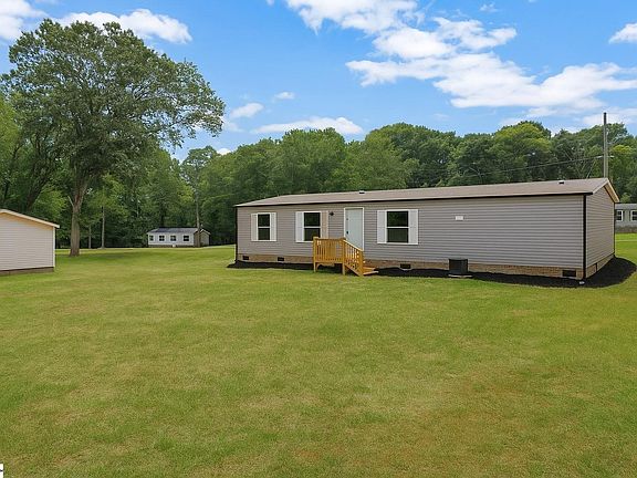 Set on a level lot, this beautifully finished new home offers 3 bedrooms, 2 bathrooms plus a flex room, and a thoughtful, open-concept. The home has been de-titled and is FHA certified. Step inside to a large living room that flows into the kitchen and dining area, a space that's ideal for everyday living and entertaining. The kitchen is centered around a generous island and features ample cabinetry, a walk-in pantry, and modern appliances. The primary suite is located on its own side of the home for added privacy and includes a double-sink vanity, large soaking tub, and a spacious walk-in closet. Two additional bedrooms, a full guest bath, and flex room, perfect for a home office, playroom, or hobby space, are located off a private hallway on the opposite side of the house. A dedicated laundry room with exterior access adds functionality. Step outside to a backyard and deck, great for relaxing, grilling, or letting pets roam. With a flat yard, there's room to garden, play, or simply enjoy the outdoors. This property offers a peaceful setting while still being convenient to nearby shopping, dining, and schools.